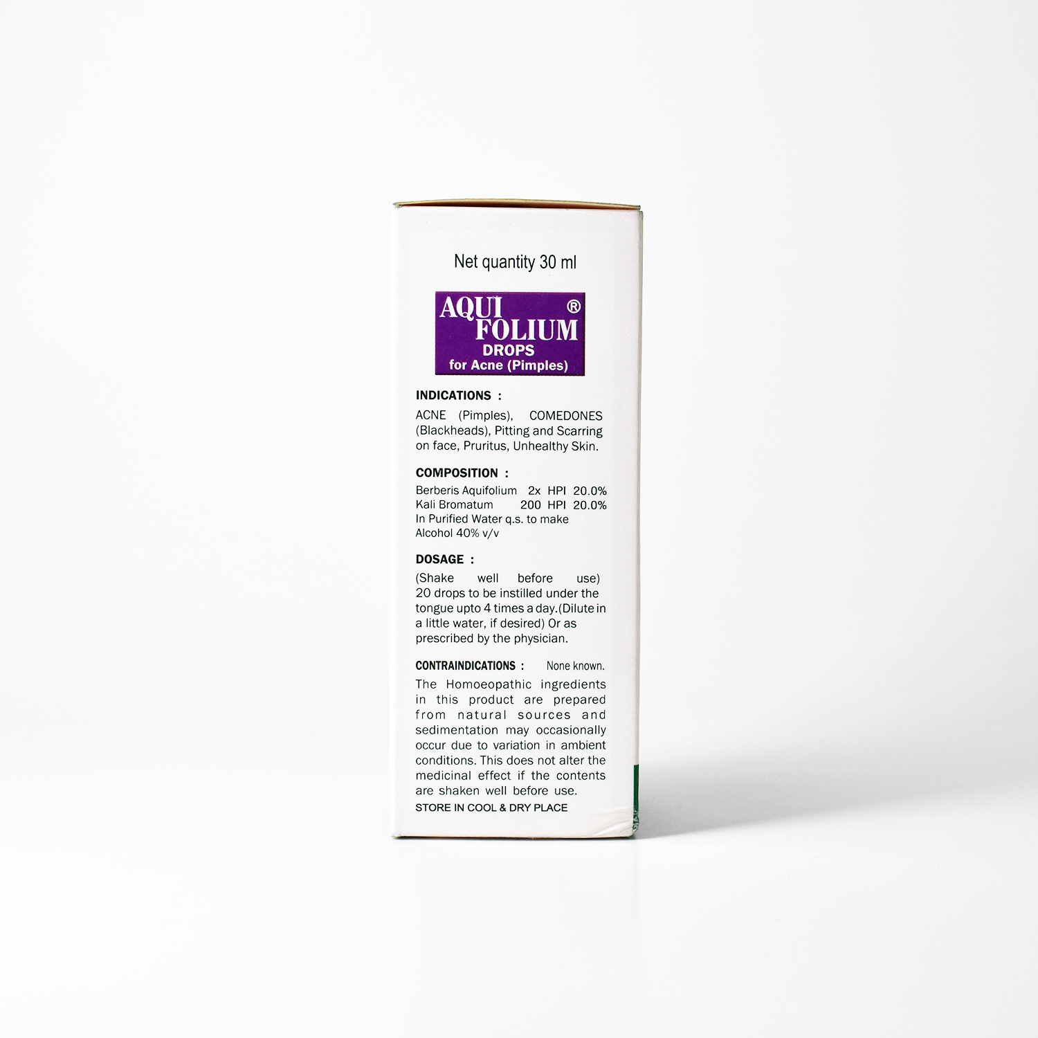 Medisynth Aquifolium Drops is a trusted homeopathic formulation that helps in clearing acne, pimples, and skin blemishes by purifying the blood and correcting internal imbalances. It acts from within to reduce eruptions and pigmentation caused by acne or other chronic skin disorders. Regular use helps maintain clear, healthy, and radiant skin by addressing the root cause of skin issues rather than only the surface symptoms.