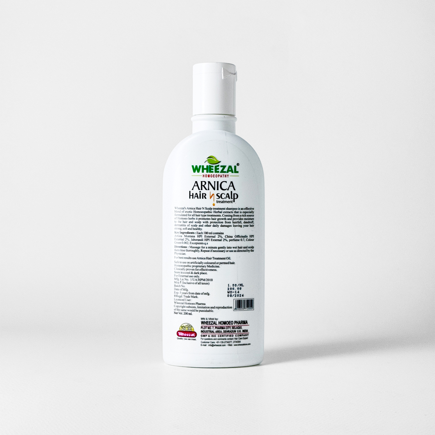 Wheezal Arnica Hair N Scalp Shampoo is a homeopathic herbal cleansing formula designed to nourish the hair roots, improve scalp health, reduce dandruff, hair fall and premature greying. It supports the scalp’s natural balance and helps revitalise hair strength and vitality.