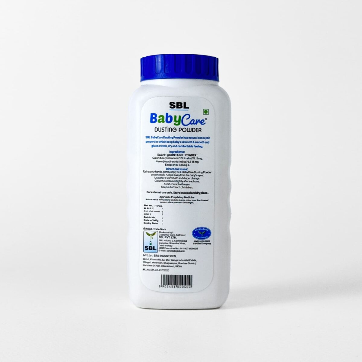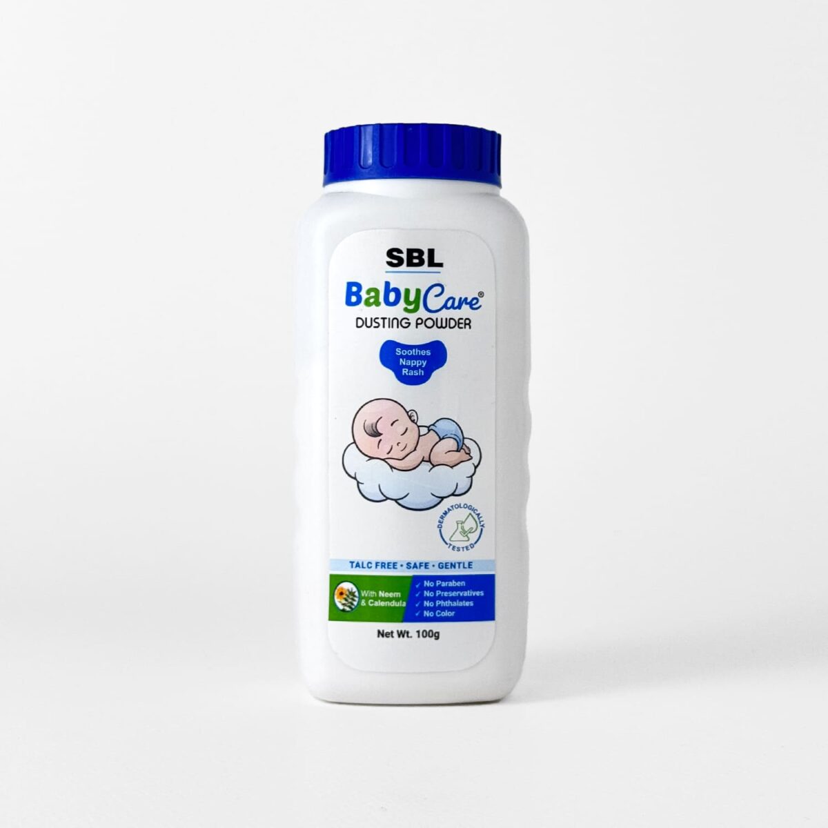 SBL Baby Care Dusting Powder is a natural, talc‑free formulation blending Vitamin E, neem, and calendula to soothe and protect delicate baby skin.