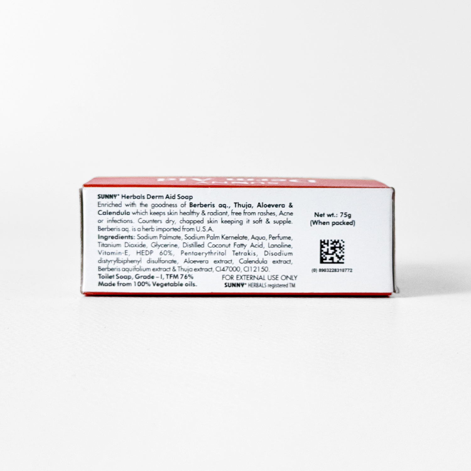 Bakson’s Sunny Herbals Derm Aid Soap is a medicated herbal soap specially formulated for gentle skin cleansing and protection. It combines the natural goodness of Aloe Vera and Calendula with antiseptic and soothing properties that help relieve itching, irritation, and minor skin infections. With its mild lather, the soap nourishes and softens skin, making it suitable for daily use, especially for sensitive and problem-prone skin.
