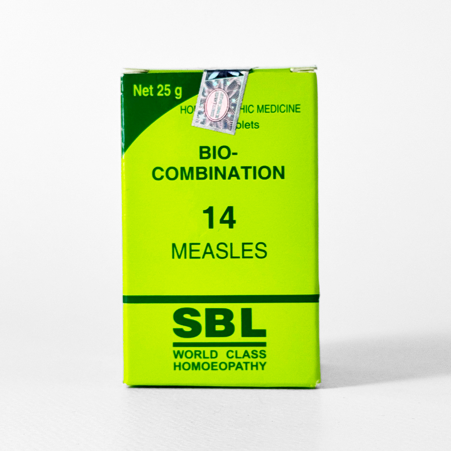 Bio-Combination 14 is a homeopathic biochemic formulation indicated for measles and its associated symptoms, including fever, rash, irritation, cough and general weakness. It supports smoother eruption of measles and helps reduce discomfort during the prodromal and eruptive phases.