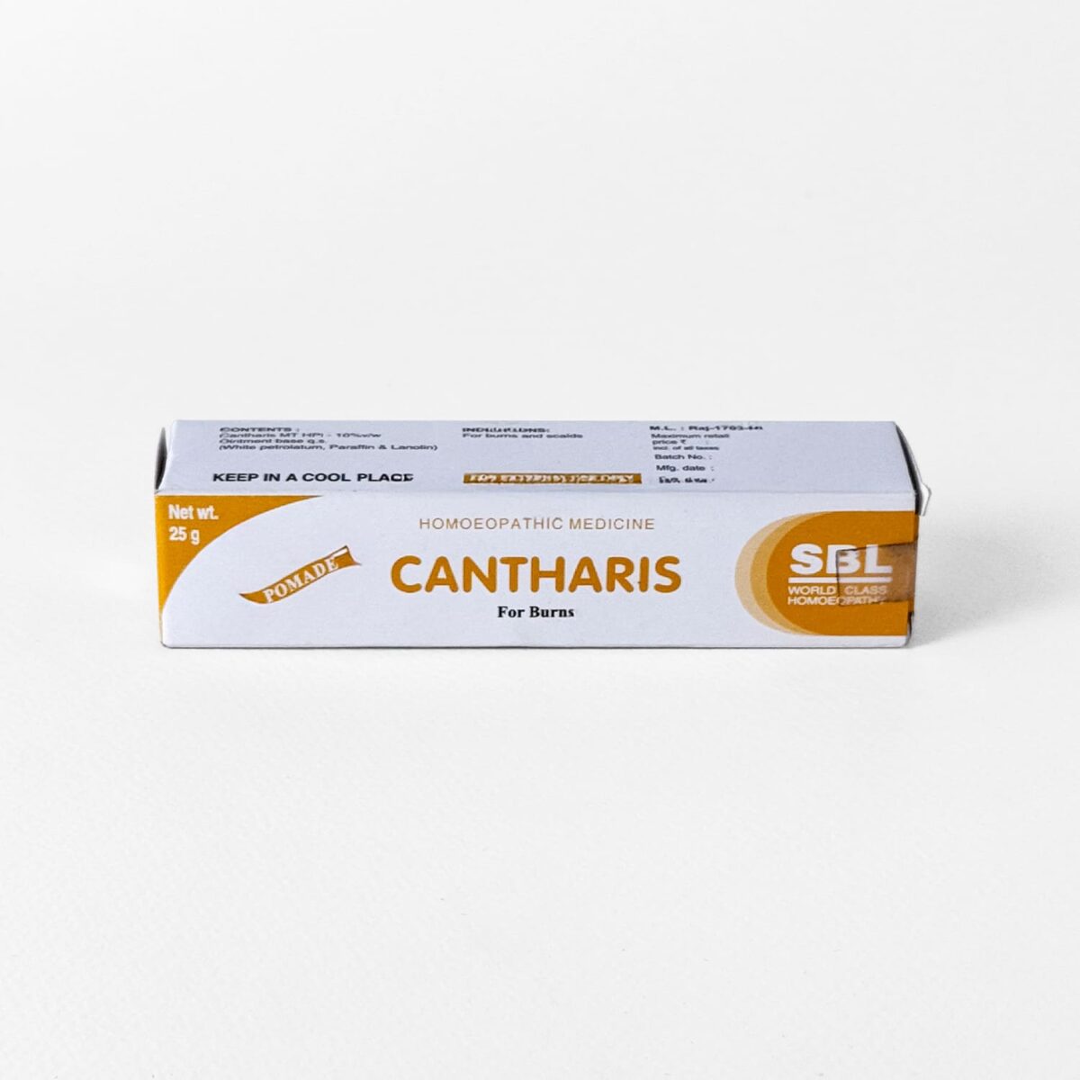 SBL Cantharis Ointment soothes burns, scalding, sunburn, and vesicular eruptions—relieving pain, itching, and redness naturally.