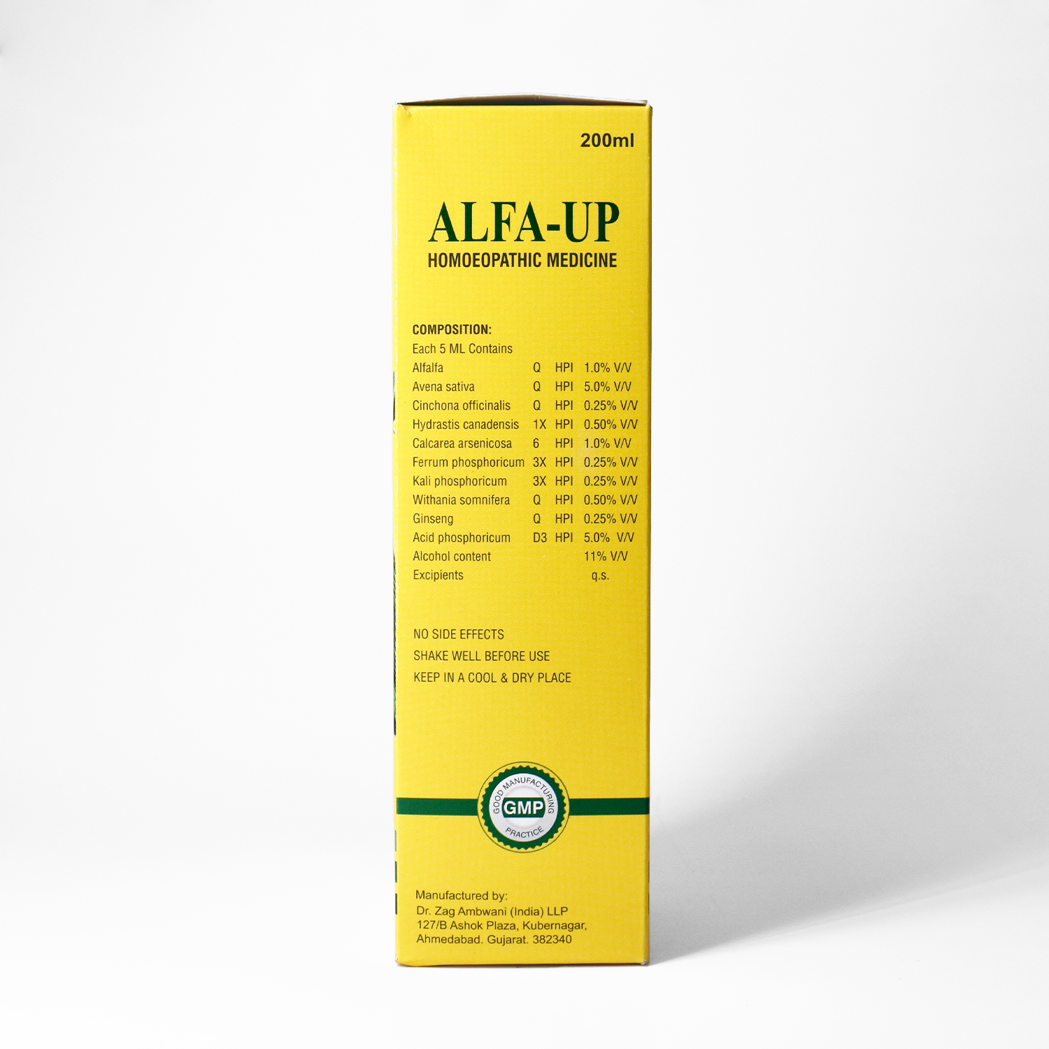 Dr. Boricke Alfa-Up Syrup is a general health restorative and nutritional tonic that helps combat physical and mental fatigue. It enhances appetite, supports digestion, and aids recovery after prolonged illness or weakness. Regular use improves strength, stamina, and overall vitality by promoting better nutrient absorption and metabolism.