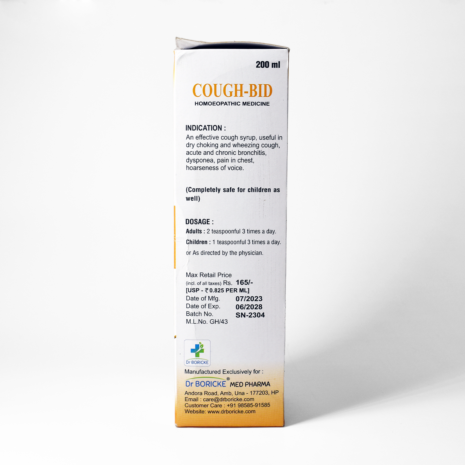 Dr. Boricke Cough-Bid Syrup (Honey & Tulsi) is a homeopathic cough formulation designed to relieve wheezing, hoarseness, and throat irritation. It combines expectorant, soothing, and anti-spasmodic actions to ease persistent coughs and restore comfort to the respiratory tract. With regular use, it may help support better respiratory function and reduce discomfort from cold and bronchial irritations.