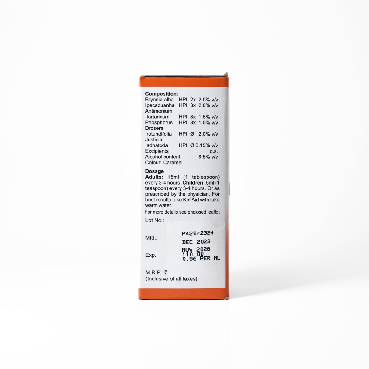 Bakson Kof Aid Syrup is a homeopathic cough formulation intended to relieve both dry and productive coughs. It soothes irritation in the throat and chest, supports expectoration, and helps reduce bronchial spasms. With regular use, it aids in restoring normal respiratory function and promotes comfort in breathing.