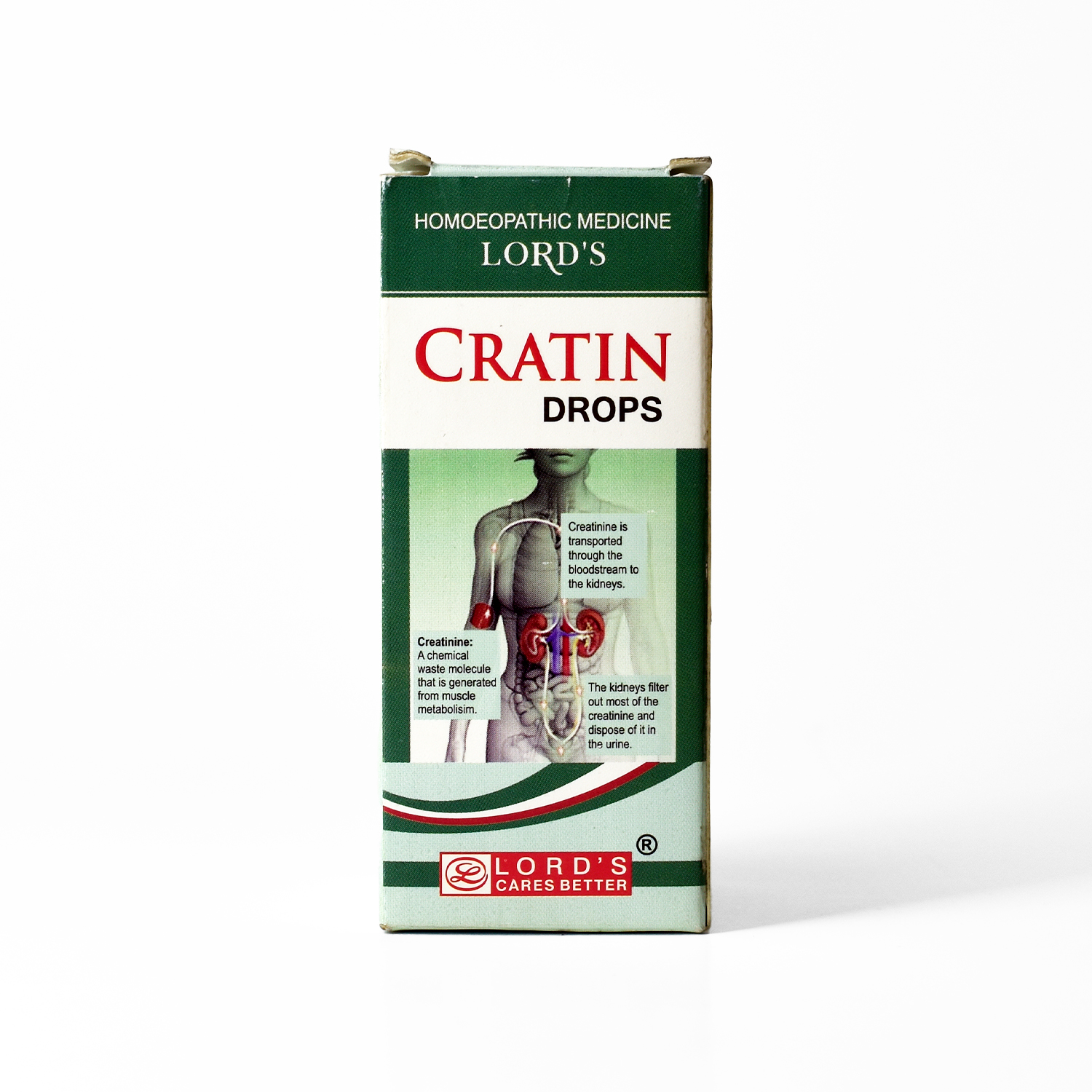 Lords Cratin Drops is a homeopathic formulation designed to help maintain normal creatinine levels and support kidney health. It aids in the proper filtration of blood, promotes toxin elimination, and helps manage mild renal dysfunction. Regular use assists in reducing edema, regulating urination, and improving overall kidney efficiency.