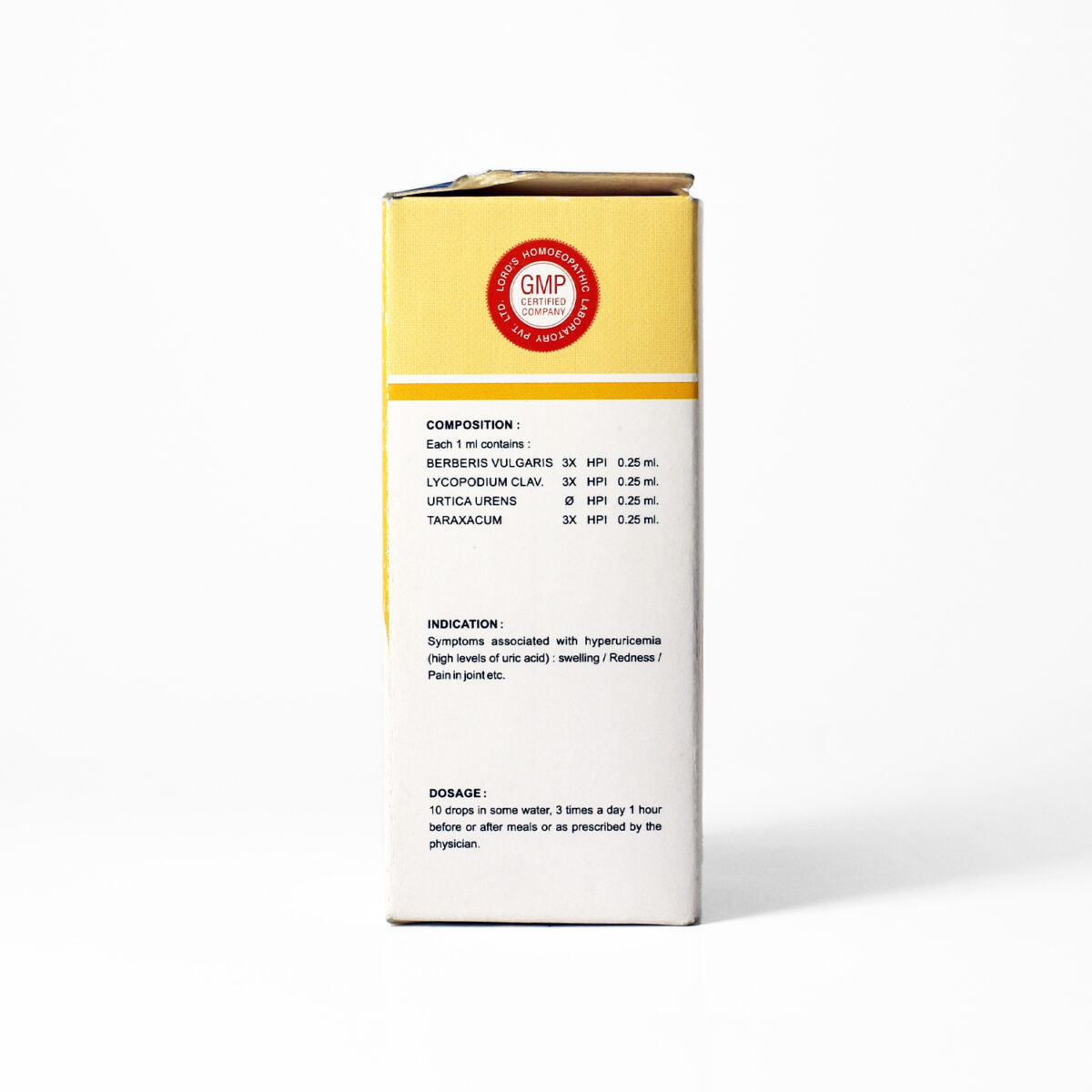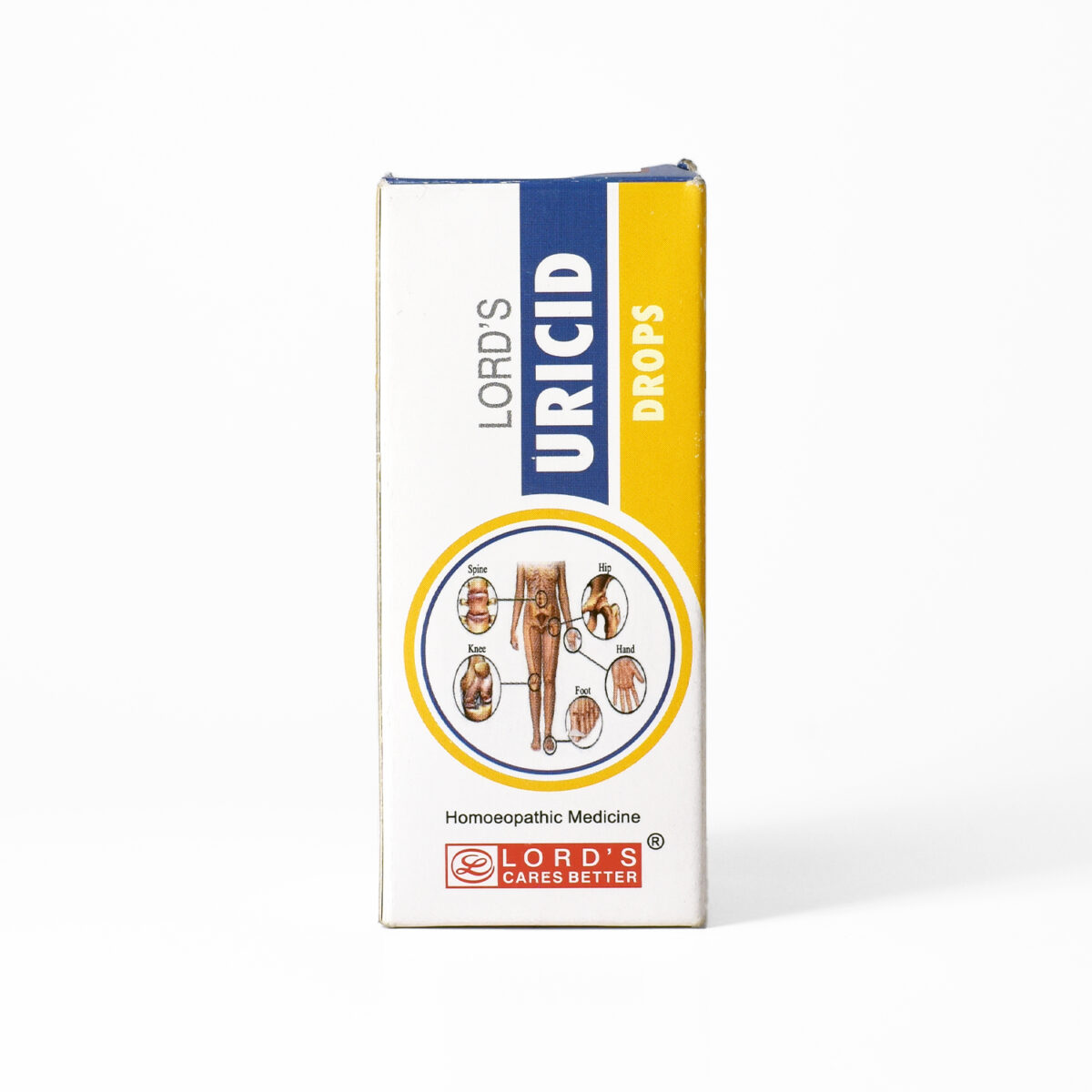 Lords Uricid Drops is a homeopathic medicine formulated to help control elevated uric acid levels and relieve pain associated with gout and joint inflammation. It aids in dissolving urate crystals deposited in joints, easing stiffness and swelling. Regular use helps support kidney function, reduce gout attacks, and maintain normal uric acid metabolism.