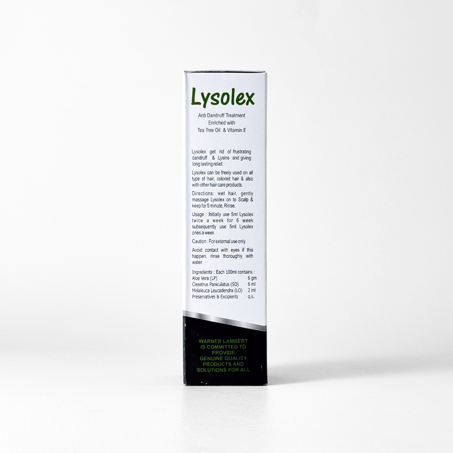 Lysolex Shampoo is a specialty hair-care shampoo formulated for the treatment of dandruff, scalp irritation and dry, itchy scalp. It features antifungal and antibacterial support to help cleanse dead skin cells, reduce flaking and restore scalp comfort. The formula is enriched with tea tree oil, aloe vera, vitamin E and botanical extracts that help support scalp wellness, strengthen hair roots and promote healthier hair appearance and feel. Suitable for regular use, it helps manage scalp-flaking problems while maintaining hair vitality.