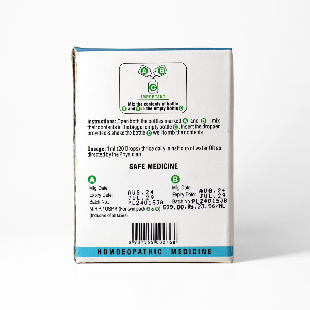 Adults: 10–15 drops in half a cup of water, twice daily.