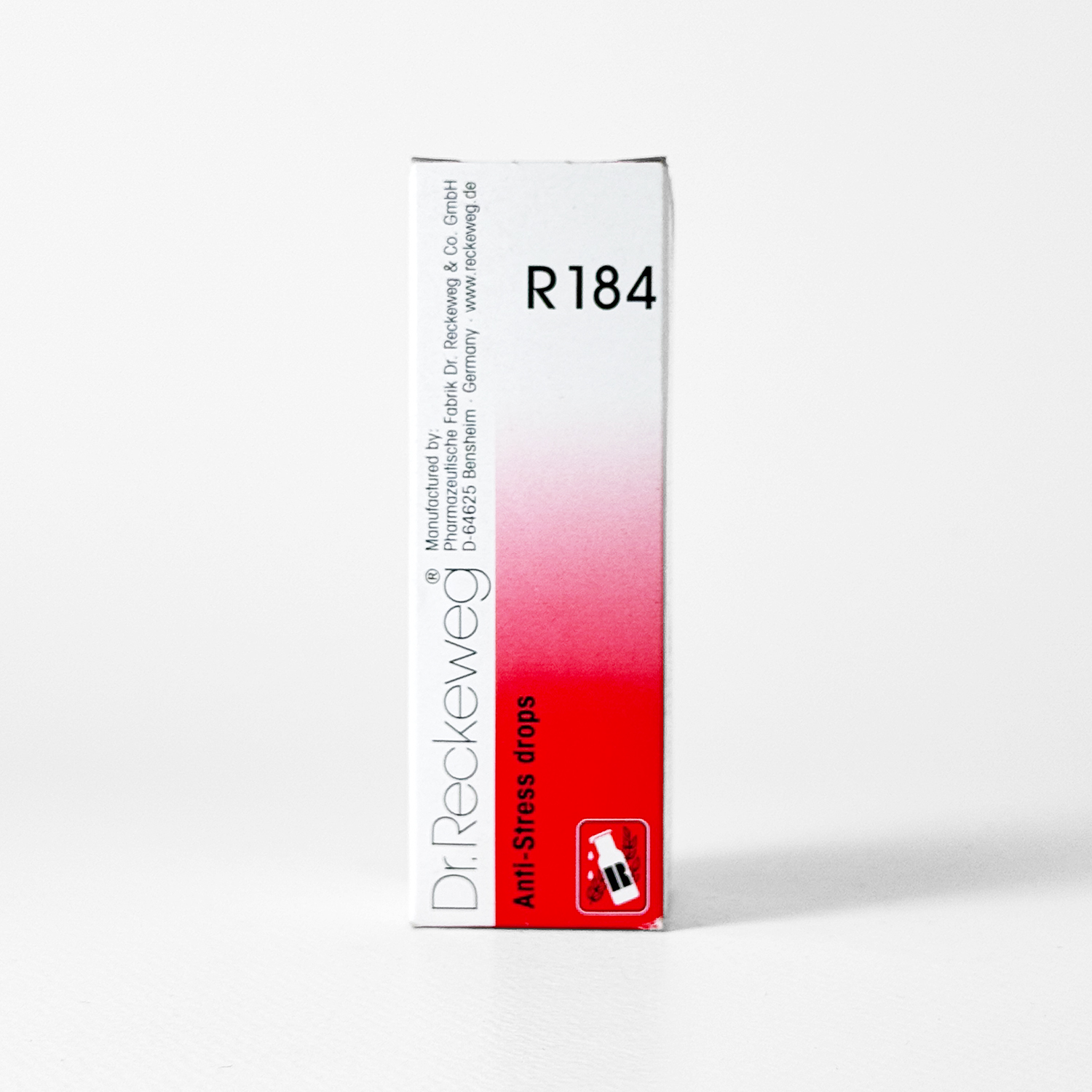 Dr. Reckeweg R184 Drops (Anti-Stress) is a homeopathic formulation intended to provide adjuvant support during stress, overwork, mental exhaustion, and temporary depressive states. The drops help calm nervous tension, reduce mental fatigue, and support emotional balance so the body and mind can recover from strain.