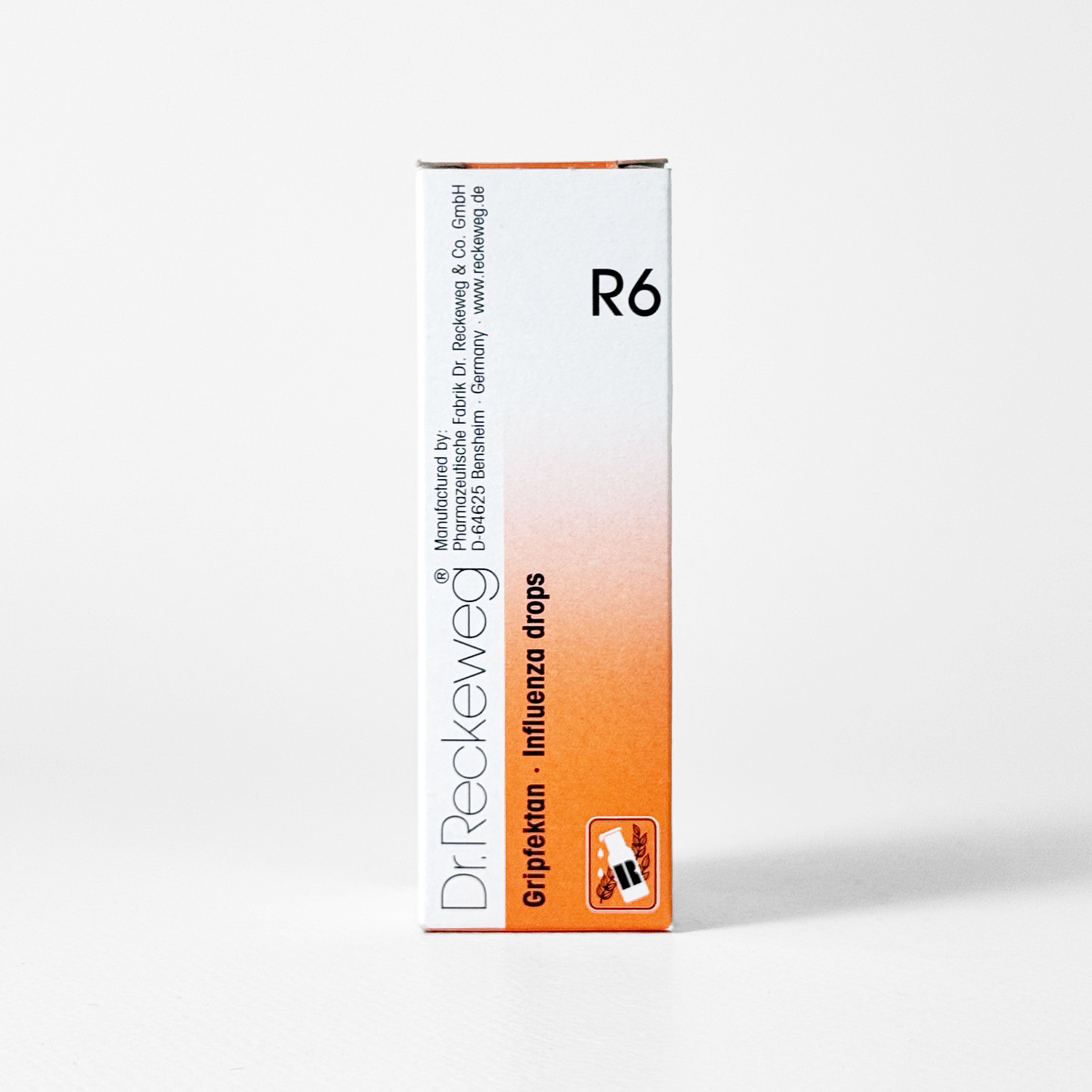 Dr. Reckeweg R6 Drops is a homeopathic formulation designed to relieve symptoms associated with influenza, fever, body ache, sore throat, and common cold. It helps in reducing body temperature, alleviating fatigue, and soothing irritation of the respiratory tract. The drops work by supporting the body’s natural defense mechanisms to combat viral infections and promote faster recovery during seasonal flu or acute feverish conditions.