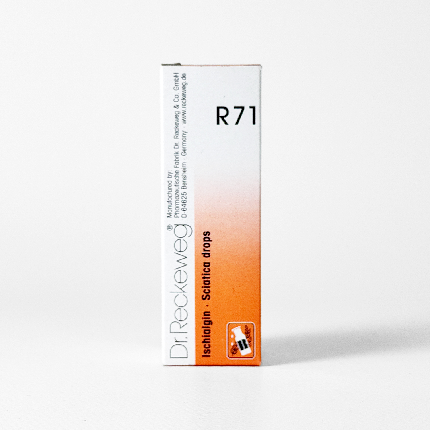 Dr. Reckeweg R71 Drops (Ischialgin) is a homeopathic formulation intended for relief from sciatic nerve pain, lower back pain radiating into the legs, tingling or numbness in the legs, and other symptoms of neuralgia associated with the lumbar spine.