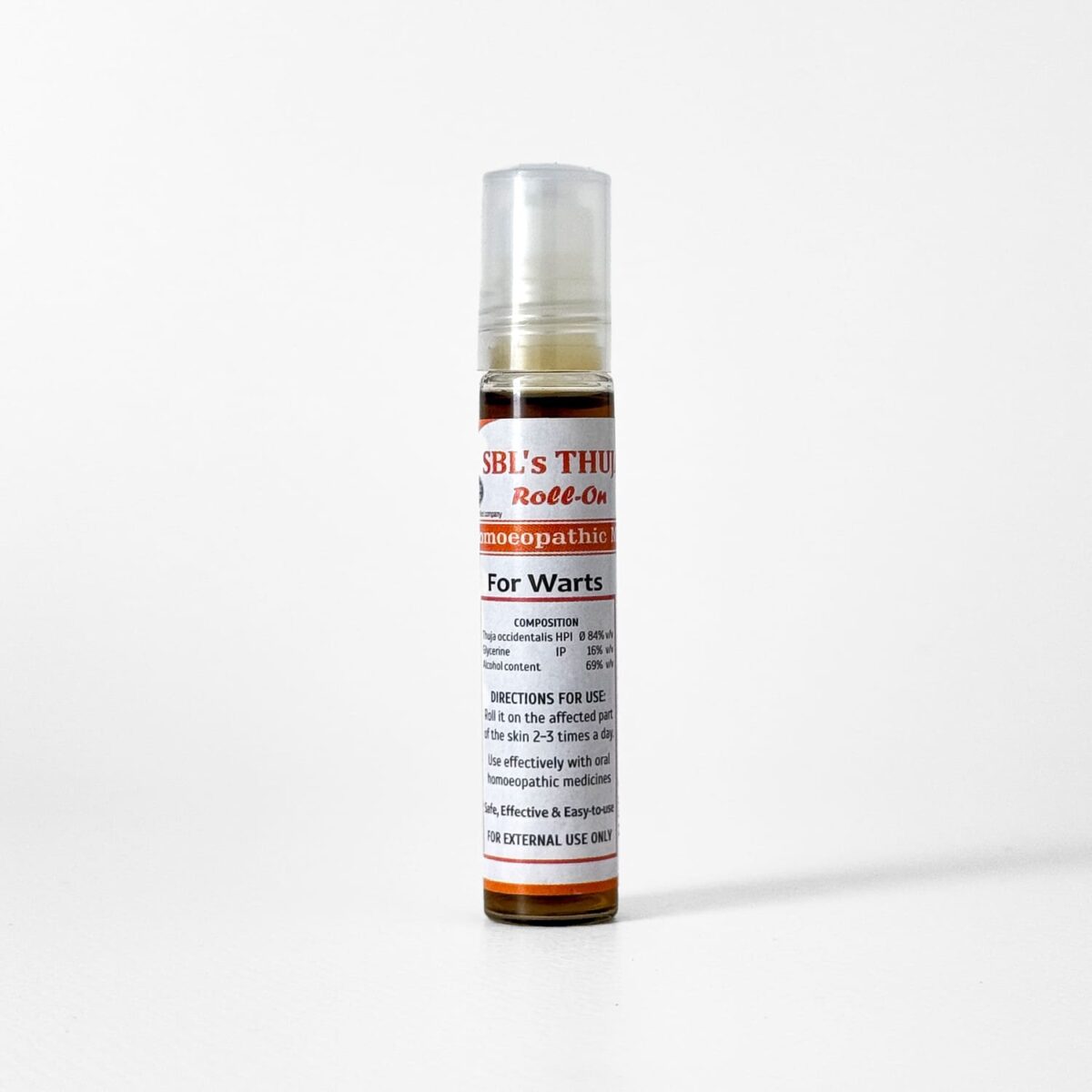 SBL Thuja Roll-On is a homeopathic topical solution designed to treat warts, corns, polyps, tubercles, brown spots, and skin eruptions.