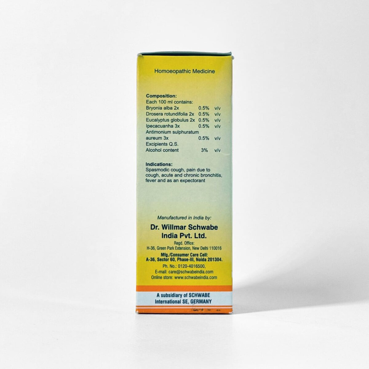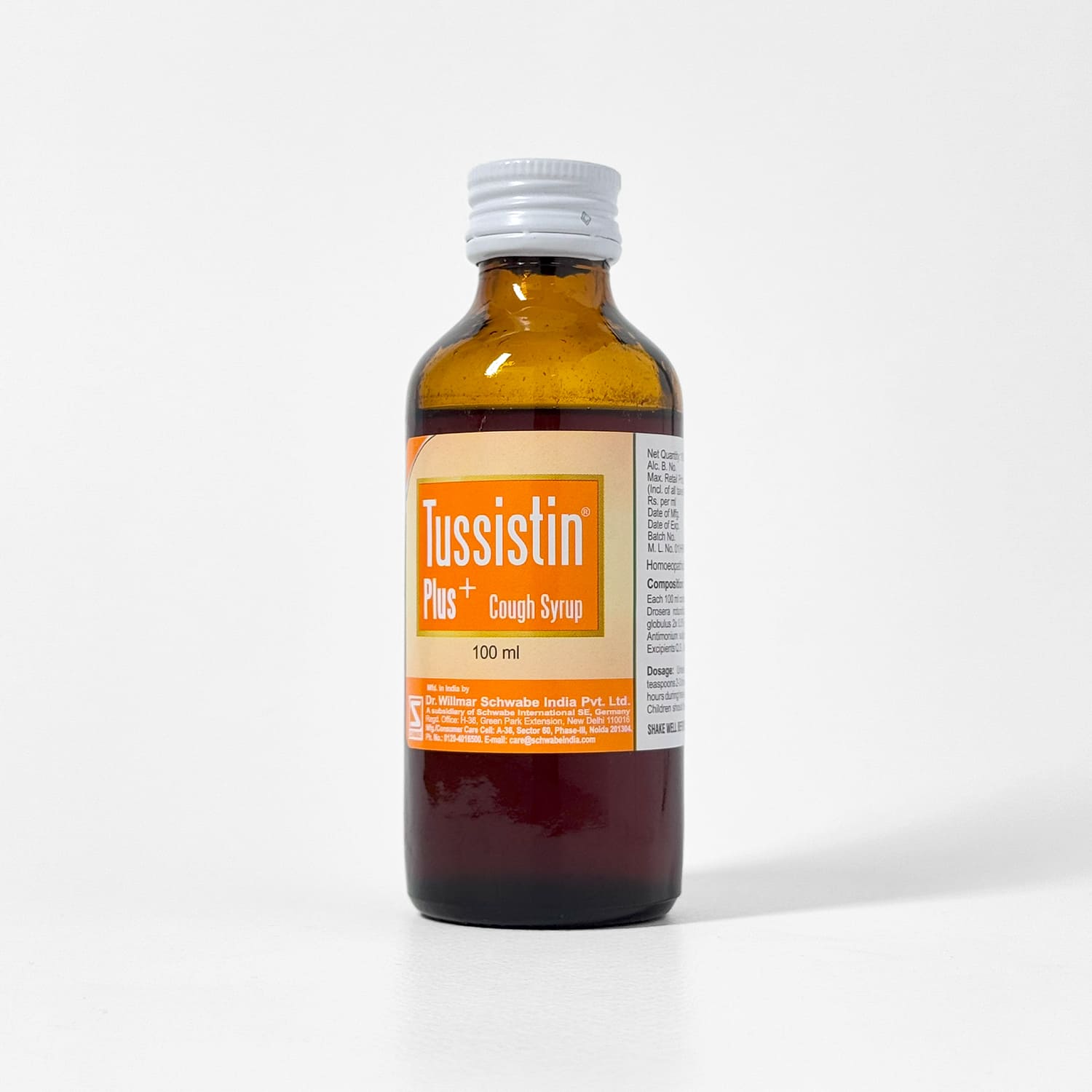 Tussistin Plus Cough Syrup with Ginger is a homeopathic liquid remedy formulated to relieve dry, spasmodic, and productive cough with chest discomfort.