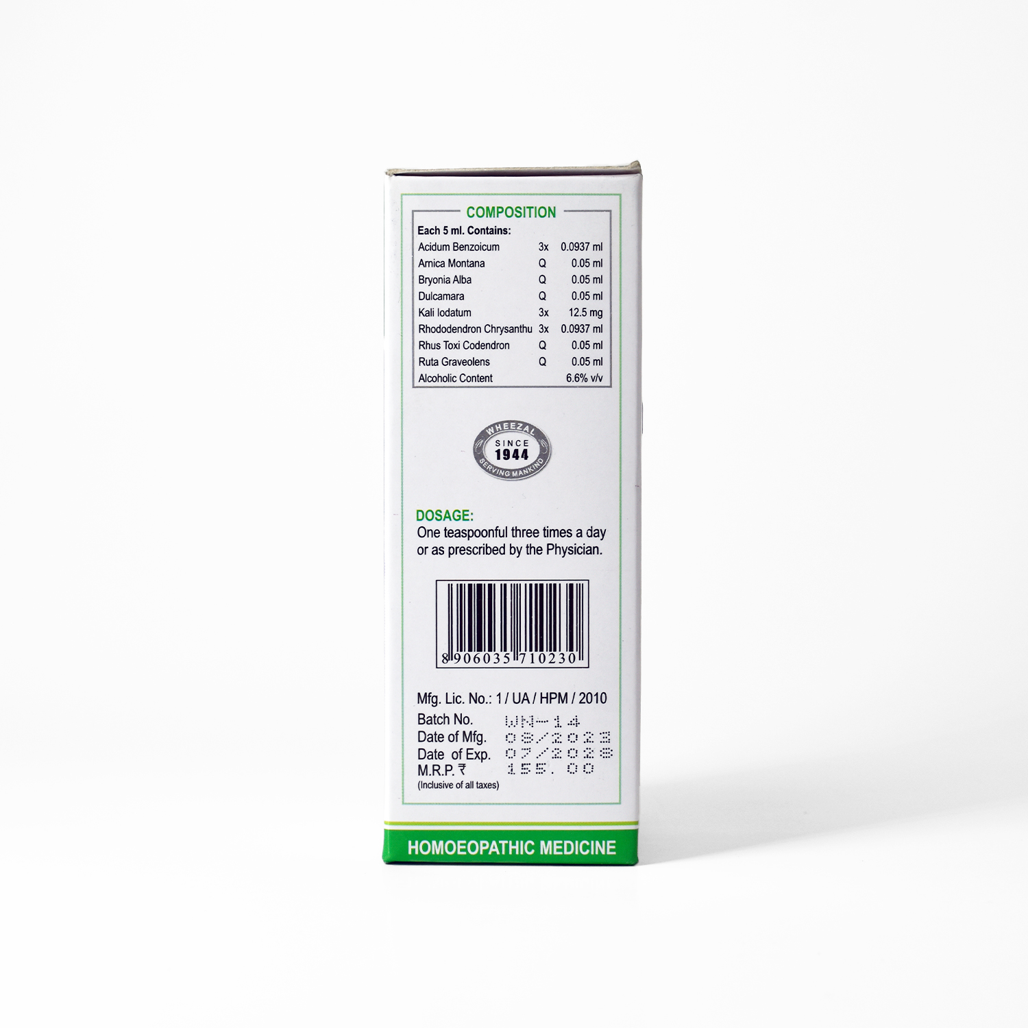 Wheezal Hymusa Syrup is a homeopathic formulation aimed at providing relief from joint and muscular pain, neuralgia, and inflammatory conditions. It supports the body in alleviating stiffness, swelling, and discomfort associated with arthritis, sciatica, and rheumatism. It may also help ease symptoms of lower back pain and promote mobility in affected areas.