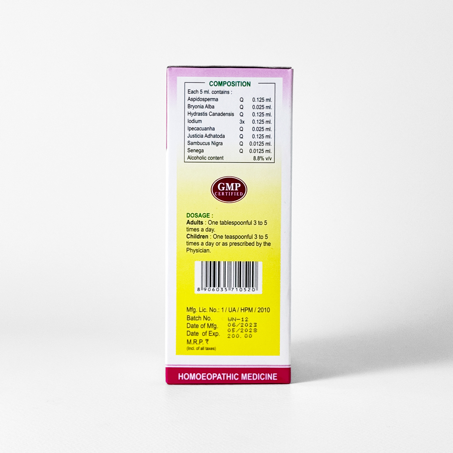 Wheezal Mixture Syrup is a homeopathic expectorant syrup formulated to ease coughs, chest congestion and mucus accumulation. It supports loosening of phlegm, thinning of bronchial secretions and relief from spasmodic chest irritation.